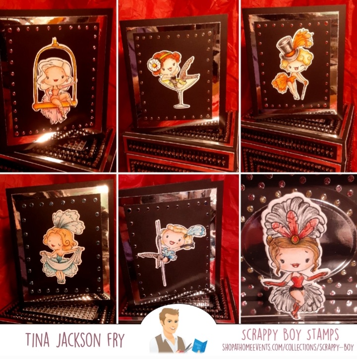 For this Bling box I used 2 stamp sets, Burlesque Beauties and Curve Appeal along with the matching dies from Scrappy Boy Stamps. All images were colored with prisma premier pencils. The box was inspired by a YouTube video by Sam Calcott….Gorgeous Dancing Fairy Music Box