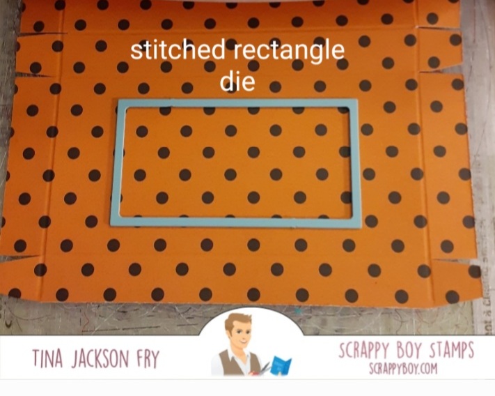 It ishard to see the score lines. The rectangle die goes on one side of the box in the bigger section.