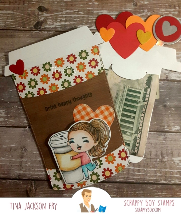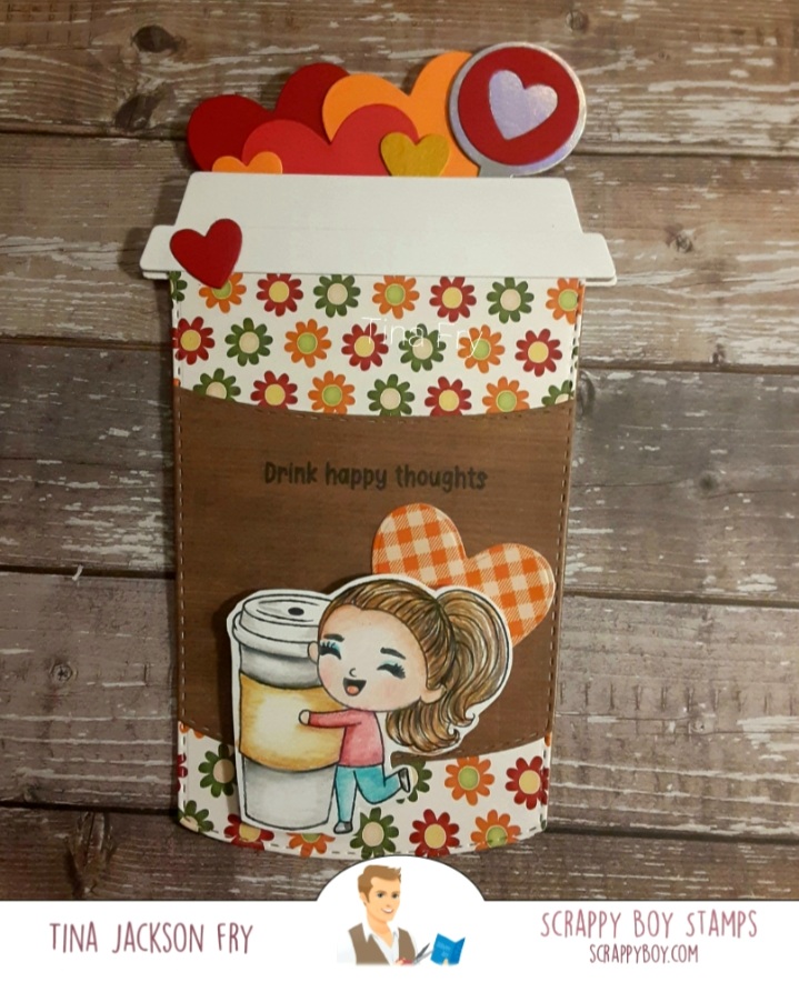 Hi today I’m sharing a gift card cup card. The image is from the Cute Girls Coffee set from Scrappy Boy Stamps. The patterned paper is from the Fall Gnomes release. The Stamps also have matching dies available. You can join the fun on Facebook with the Scrappy Boy Stamps Inspiration Group. https://scrappyboy.com/collections/cute-girls-coffee(The die is from Scrap Diva Designs.) I love the Scrappy Boy design paper, makes the card sturdy. Colored with Prisma Premier Pencils.