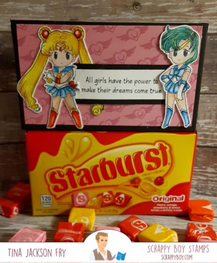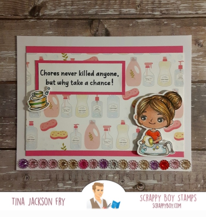 Hi, I made a box to hold a small box of Starburst candies. The images are part of the 6×8 Warrior Princess stamp set from Scrappy Boy Stamps. Matching dies are available too. The incredible paper is from a Scrappy Boy paper pack. The images are colored with Prisma Premier Pencils. Hope you join the fun on Facebook with the Scrappy Boy Stamps Inspiration Group. https://scrappyboy.com/pages/november-2022-releaseCute Girls Chores is a 6×8 stamp set from the new release at Scrappy Boy Stamps. Matching dies are also available. The paper pack is so awesome!