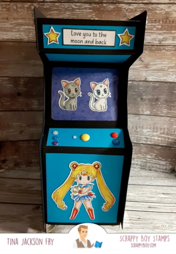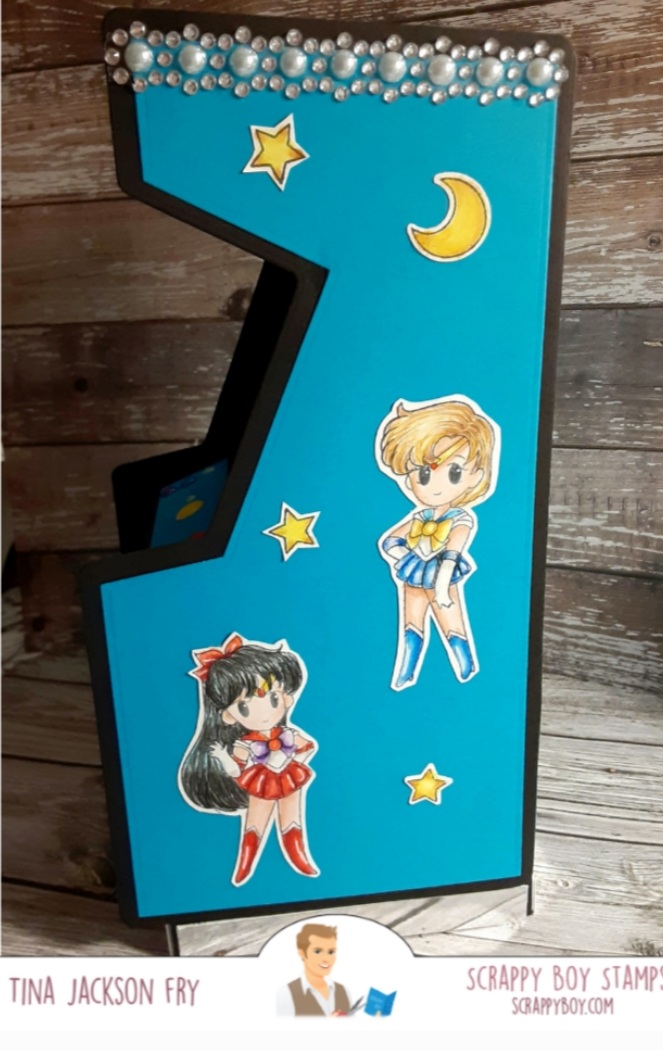 Hi, I am sharing a Retro Arcade gift box decorated with images from the new 6×8 stamp set Warrior Princess from Scrappy Boy Stamps. This set is part of the new release at Scrappy Boy Stamps. Matching dies and coordinating paper packs are also available. The Cute Girls Chores is part of the release too. Colored with Prisma Premier Pencils and I die cut the images with the matching dies. My daughter was so sweet to get the Retro Arcade die for me. It’s from KScraft on Amazon. Hope you join the fun on Facebook with the Scrappy Boy Stamps Inspiration Group page. Scrappy Boy is also on Instagram. You can find the set here. https://scrappyboy.com/collections/warrior-princess