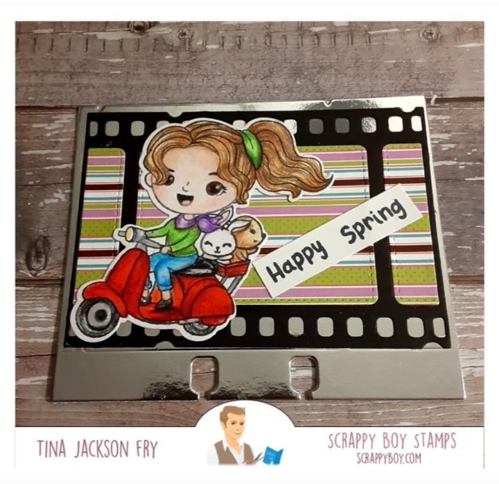 Hello hope you’re having a groovy day! Today I’m sharing projects made with the new release at Scrappy Boy Stamps. This 1st card is made with the 70’s Family sets (26×8 sets) and the Quilted slimline die. Colored with pencils . This release is so awesome. 2 6×8 sets of the 70’s Family, a 6×8 Cute Girls Easter set,, matching dies and paper packs are also available. Many new dies, overalls and 5 new dex dies too. Scrappy Boy is also on Instagram and Facebook. You can find the new release by clicking on the link. https://scrappyboy.com/pages/february-2023-releaseCute Girls Easter Memory Dex Card holder and 5 cards. Colored with pencils. Front of dex card holder. Paper is from the coordinating paper pack. Holder openedI watched a YouTube video by Mommyand.e Crafts to make the holder.Envelope dex die Polaroid dex die Polaroid dex die Camera dex die File Folder dex dieInside of File Folder dex dieFilmstrip dex die