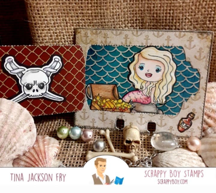 Ahoy! Hope you’re having a great day. Today I’m sharing some projects made with the May release from Scrappy Boy Stamps. I really love making dex cards, it is so fun to make them with the dies from Scrappy Boy. Used the 6×8 sets A Pirate’s Life and Shiver me Timber on these. Matching dies and coordinating paper packs are also available. This release also has a cool treat box die. You can join the fun on Facebook with the Scrappy Boy Stamps Inspiration Group page. To find the new release you can click on the link. https://scrappyboy.com/pages/may-2023-new-releaseColored with Prisma Premier Pencils Such a fun reveal dieThought the Mermaid would make a fun reveal.