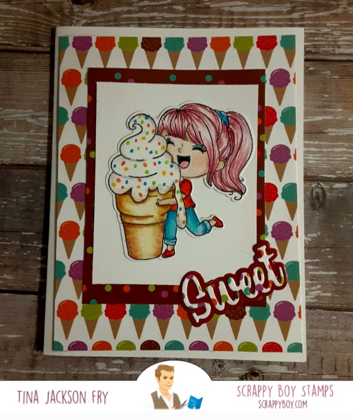 This fun image is from the 6×8 Cute Girls Summer set. Colored with pencils. The coordinating paper is so cool.
