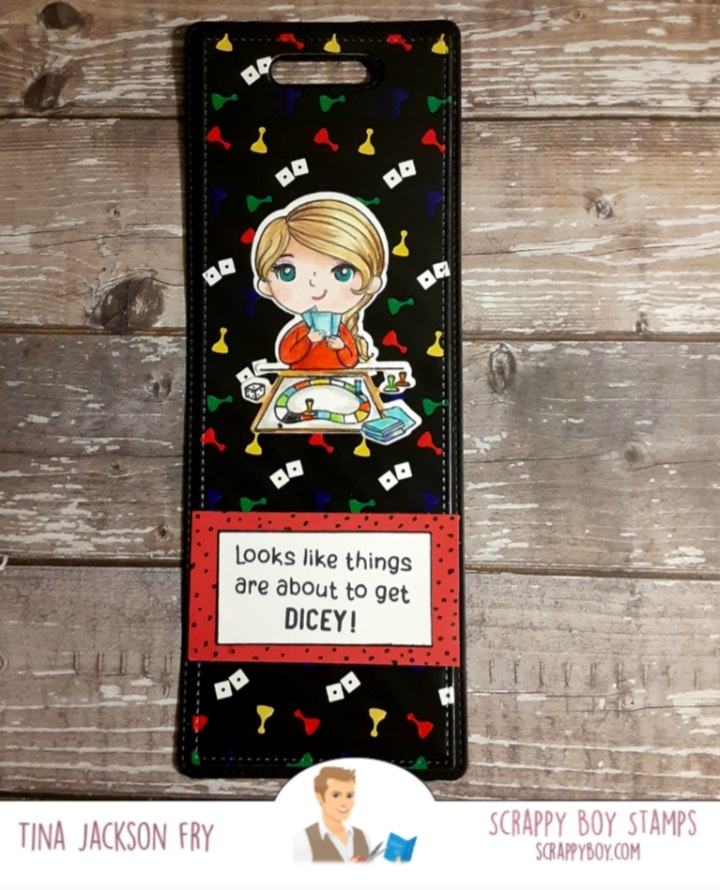 Hello! Are you craving hamburgers? I stamped the background and added the die cut hearts. The I Y’am what I Y’am 6×8 set is part of the new release at Scrappy Boy Stamps. The release offers paper packs, dies, stamps and stencils. Colored with Prisma Premier Pencils. You can join the fun on Facebook with the Scrappy Boy Stamps Inspiration Group page. To find the new release you can click on the link. https://scrappyboy.com/I used the bookmark die for this project featuring an image from the Cute Girls Fun and Games 6×8 set. Colored with pencils.