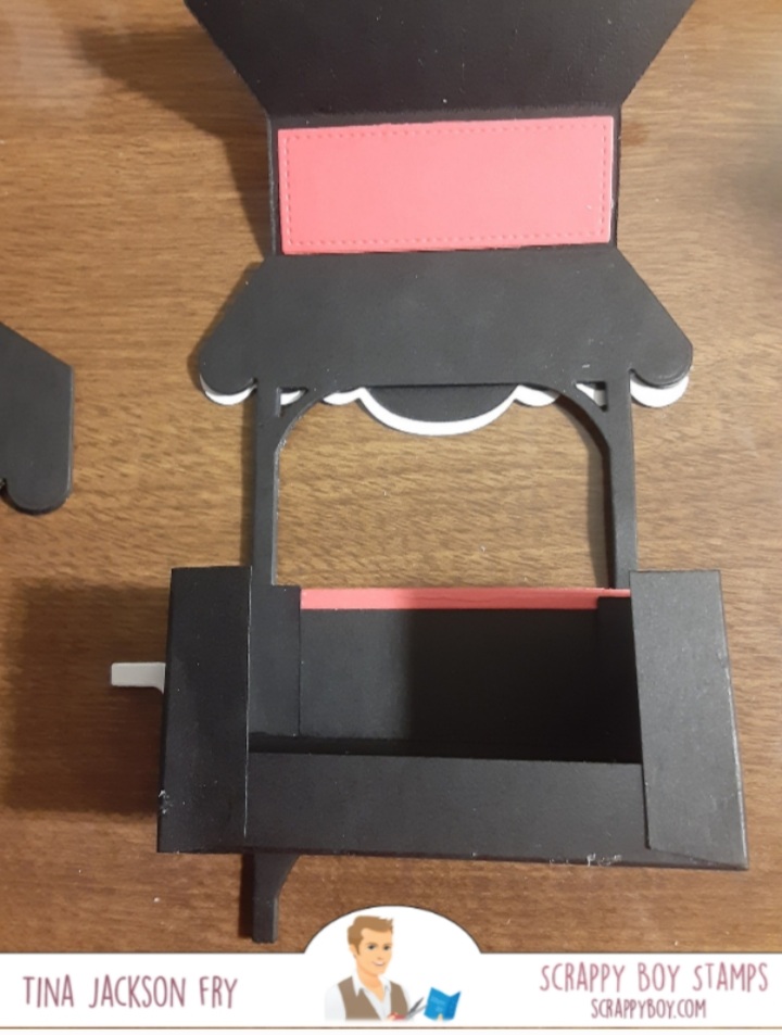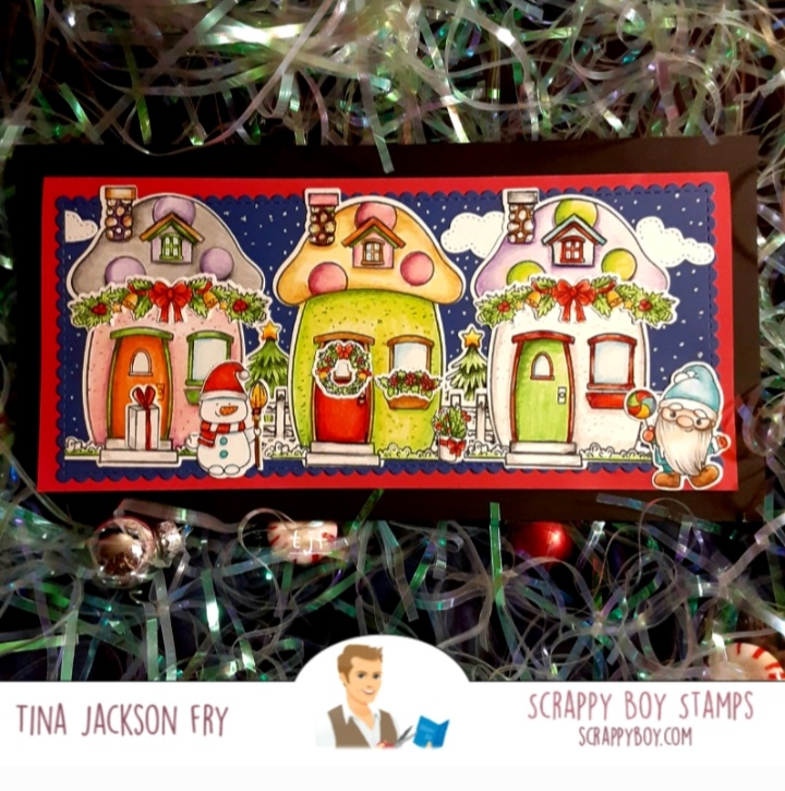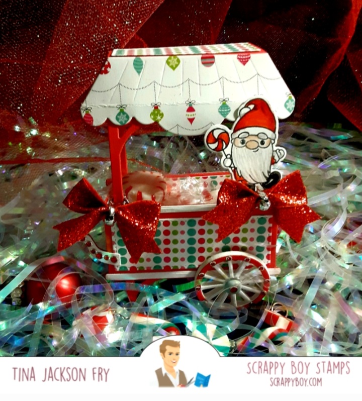 Hi, I am sharing a sneak peek for Scrappy Boy Stamps new release. It starts tomorrow Friday October 20th. The release has 3 new stamp sets, paper packs, stencils, dies, and pre colored die cuts available. One of the new dies is a pop up cart and the other is a water kettle mini album. This slimline card features the Christmas Build a Gnome Home. Colored with Prisma Premier Pencils. You can join the fun on Facebook with the Scrappy Boy Stamps Inspiration Group page. To find Scrappy Boy Stamps you can click on the link. https://scrappyboy.com/The Poo up cart die can be made into a box or fold flat to fit in an envelope.