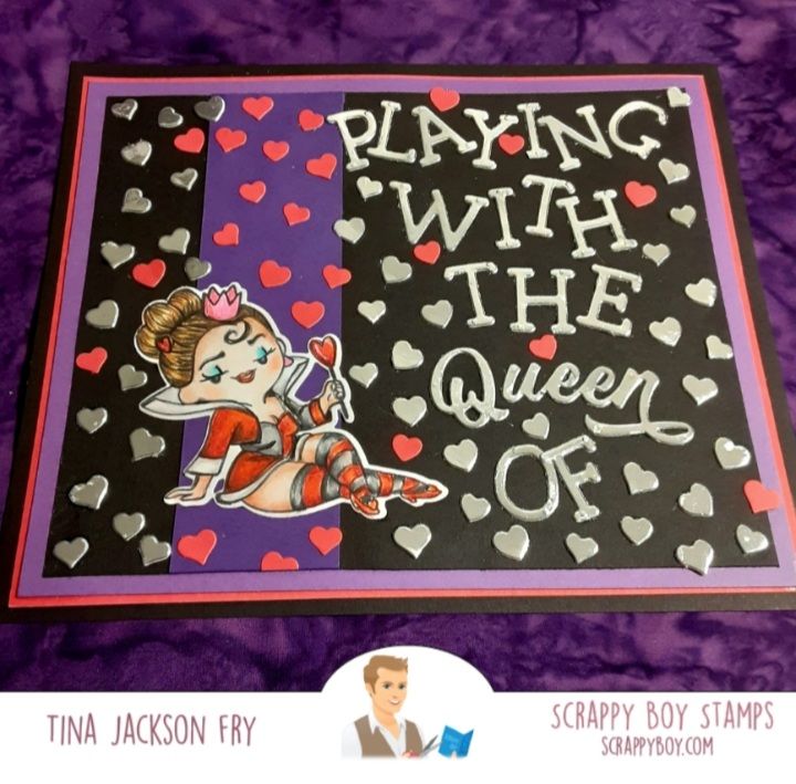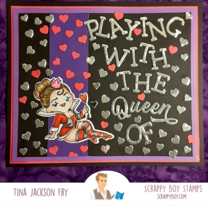 The new release for May at Scrappy Boy Stamps is going on. 3 new stamp sets/matching dies, Villainous Bombshells, Briar Rose, and Cute Boys Book Lovers. There are stencils, paper packs, and new dies. The 3 new die are the Wicked Wall Mirror mini album, Evil Queenminialbum,Glove Shaker, 15 Confetti Shaker Plates, and, the Fairy Door mini album. You can see more projects by the design team by following Scrappy Boy Stamps Inspiration Group page on Facebook and Instagram. For this project I turned the Wicked Wall Mirror die on the side and colored the queen from Briar Rose with a monochromatic look. To find the new release you can click on the link. https://scrappyboy.com/pages/may-2024-new-releaseThis gorgeous sea witch is from the Villainous Bombshells. I added the Scrappy Boy Castle die to it. I figured she needed a sand castle. Colored with Prisma Premier Pencils. The sentiment are from New Wall Mirror Die setThis Evil Queen is also part of the Villainous Bombshells set. The word Queen is from Scrappy Boy. The alphabet dies are from my stash. The Hearts are from a shaker plate die from Scrappy Boy. Colored with pencils.