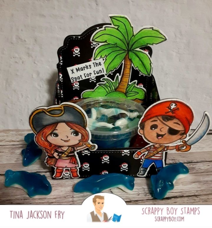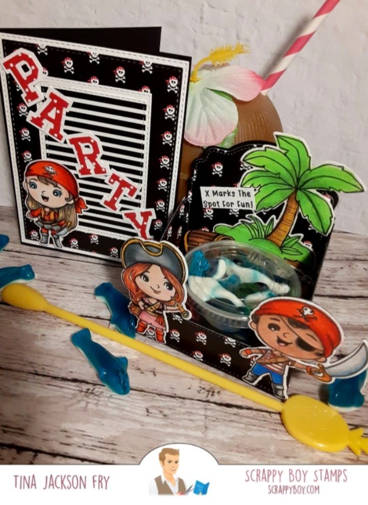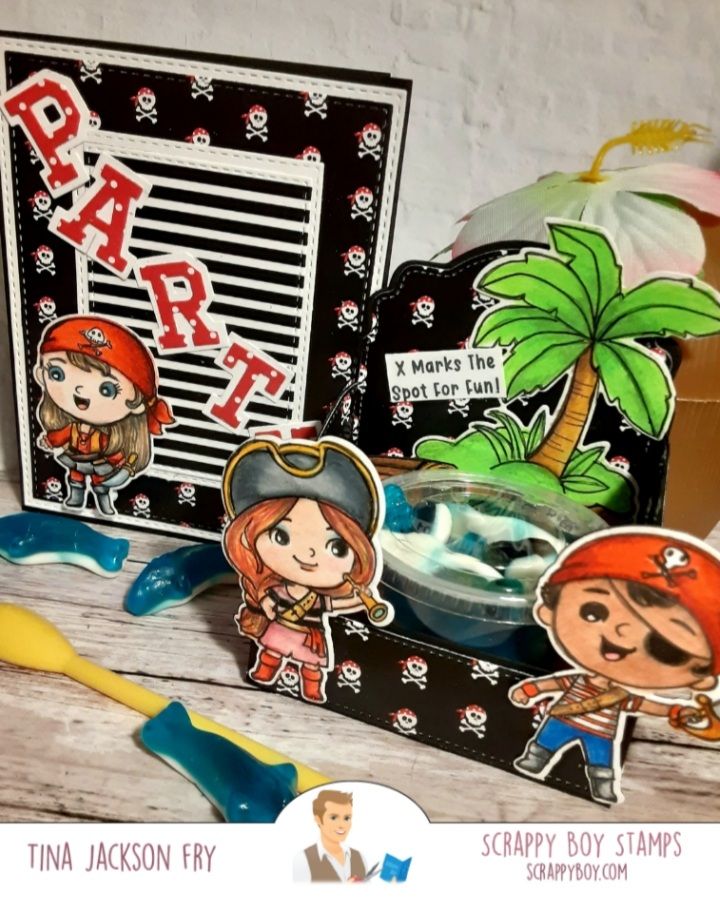 Hello! I’m sharing some projects made with New Release products from Scrappy Boy Stamps. The new release has 4 stamp/die sets: The French Chef, Neverland, Never Grow Up, and Cute Kids Pirates. It also has paper packs, stencils, 4 new die sets : 3D Box, Mouse Ears Mini Album, and a Gift Card Add On. Scrappy Boy is on Facebook and Instagram. To find the new release you can click on the link. https://scrappyboy.com/French Chef…used the 3D Box die set. The other dies are from the Scrappy Boy planner die set.The papers from this release are awesome. I also used Scrappy Boy’s Castle dies. Colored with pencils. For the Cute Kids Pirates I made a party theme project. My kids love the shark gummies so I made an insert for the 3d box die. Colored with pencils.The Scrappy Boy Stamps YouTube channel has videos on how to assemble the box.