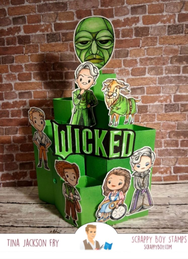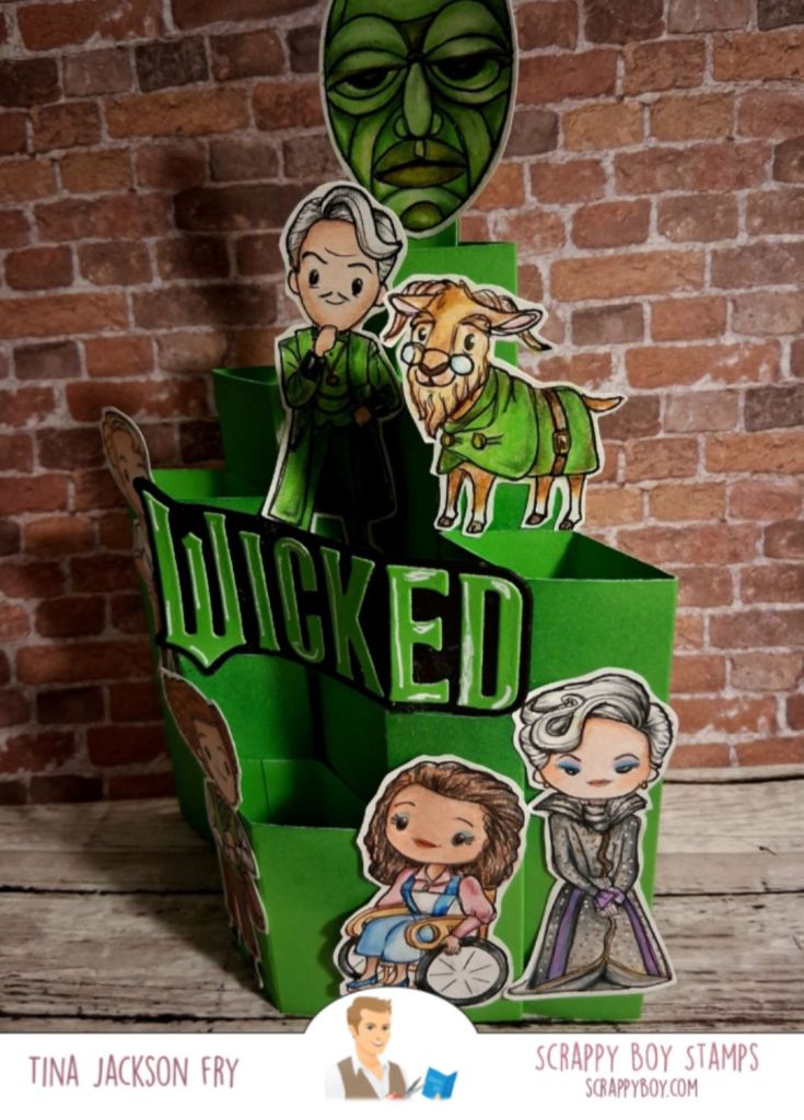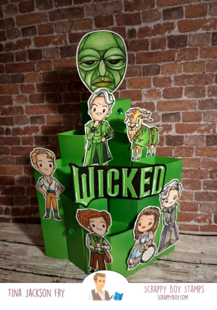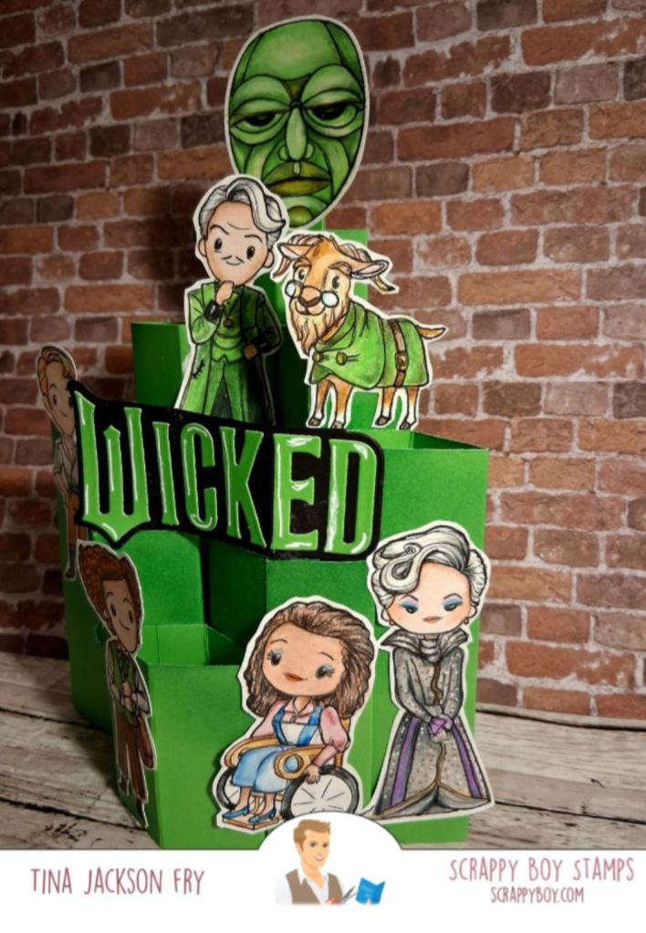 This card features images from a limited set in the mystery box A from Scrappy Boy Stamps . The boxes are available through July 13th.The design team will be sharing their amazing projects throughout the release. Limited Edition stamp setI watched Sam Calcott on YouTube for the instructions on this pop-up column card.The sentiment die is also from Scrappy . Colored with pencils. Side view View from the side