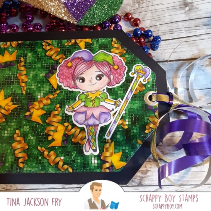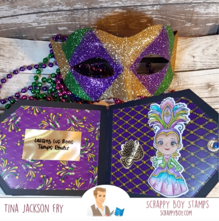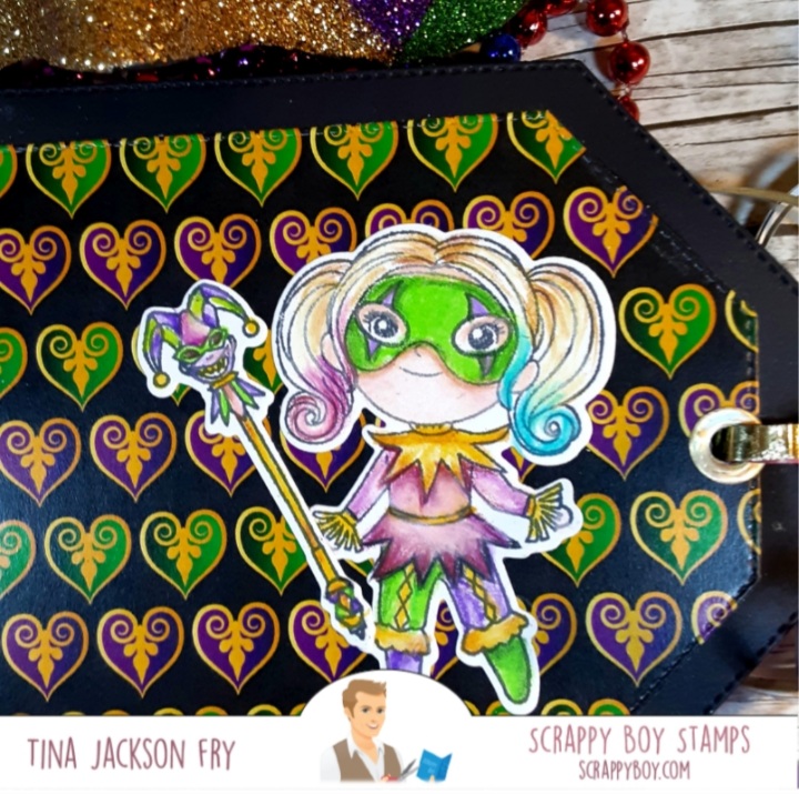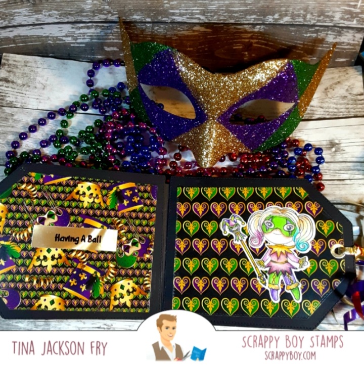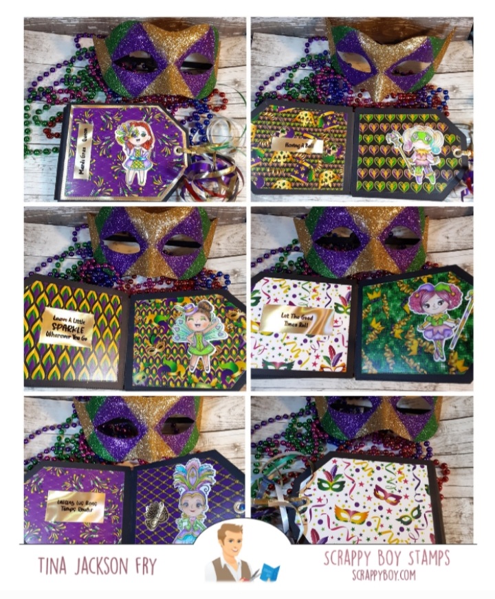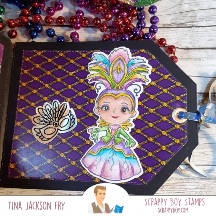 I really had fun putting the album together. The tag die set made it easy. If you don’t want ribbon on the end, a belly band would be a good option. Hope the instructions are clear and if you make one please share it on the Scrappy Boy Stamps Inspiration Group page.